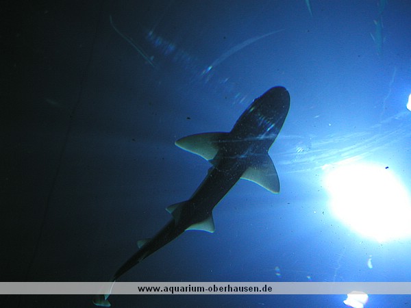 Ein Hai schwimmt über des gläsernen Tunnel hinweg.